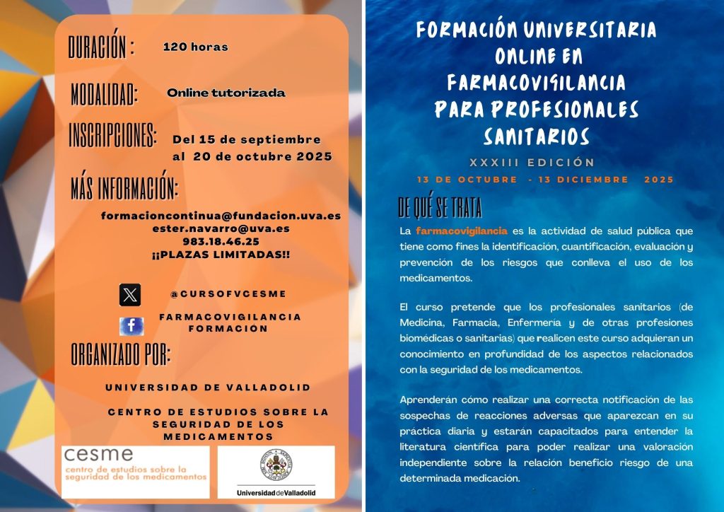 33 edición de formación universitaria online en Farmacovigilancia