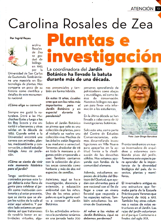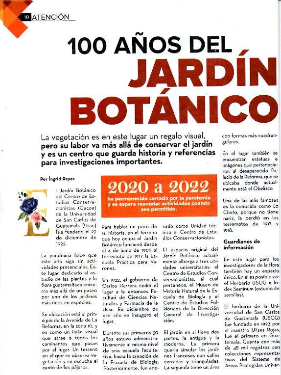 Artículo de la Revista Domingo de Prensa Libre sobre el Jardín Botánico CECON-USAC