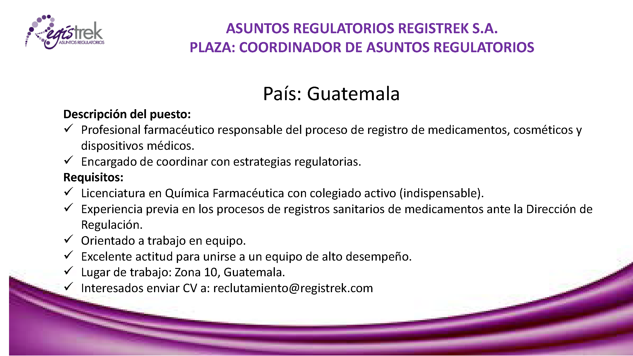 Plaza Laboral para Analista para Validación de Métodos Analíticos.