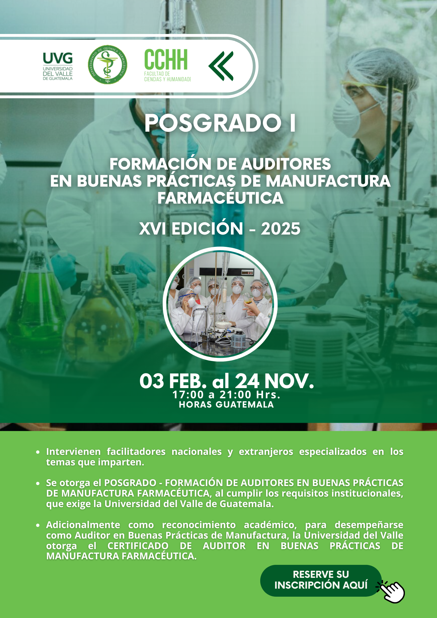 Posgrado I – Formación de Auditores en Buenas Prácticas de Manufactura Farmacéutica – 2025, XVI Edición.