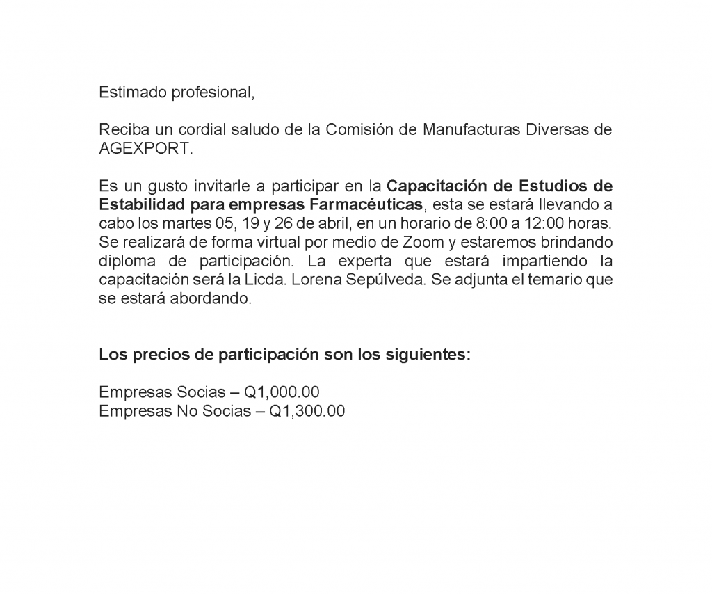 Capacitación de Estudio de Estabilidad para empresas Farmacéuticas.