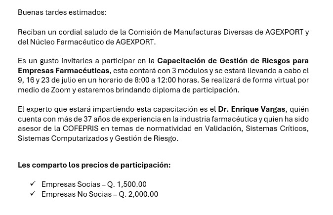 Capacitación de Gestión de Riesgos para Empresas Farmacéuticas.