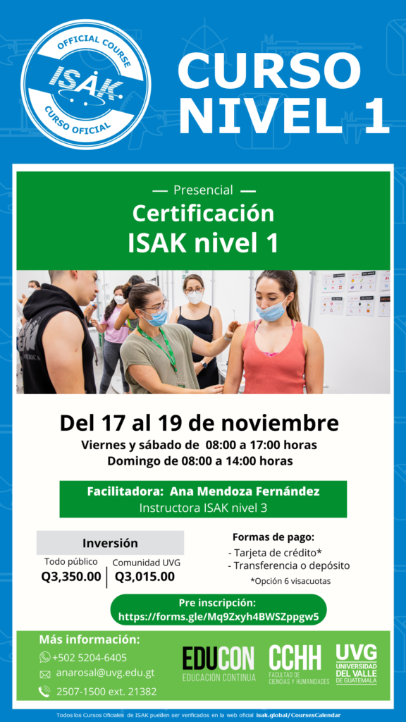 Certificación ISAK NIVEL 1 por parte de la UVG.