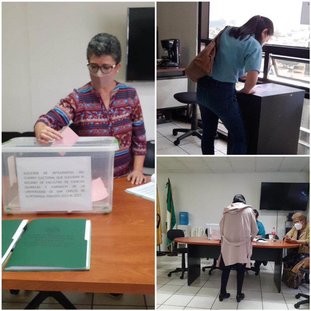 El pasado martes 24 de octubre, 286 agremiados participaron en la elección del Cuerpo Electoral profesional (125 electores no catedráticos) que elegirá al Decano de la Facultad de Ciencias Químicas y Farmacia de la Universidad de San Carlos de Guatemala, período 2023-2027.