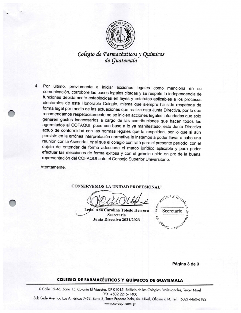 Con mucha pena hemos estado recibiendo informaciones con respecto a los requerimientos de aclaración por parte del Tribunal Electoral sobre el tema de las Elecciones de Representante del COFAQUI ante el Consejo Superior Universitario, en donde se indica que incurrimos en “silencio administrativo”, es decir que no hubo respuesta de nuestra parte.