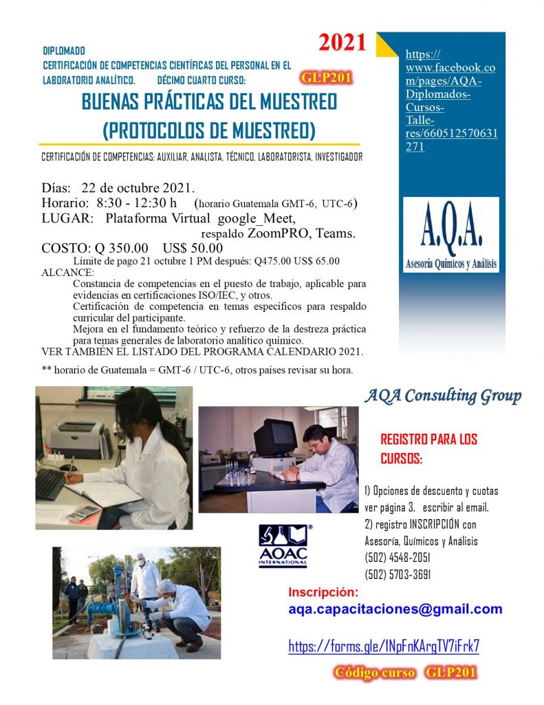 Curso Corto: Buenas prácticas del Muestreo, Protocolos GLP201 /2021.