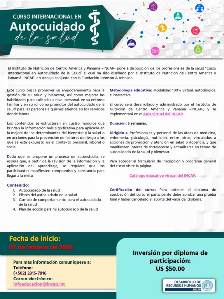 Curso internacional en Autocuidado de la Salud por parte del INCAP.