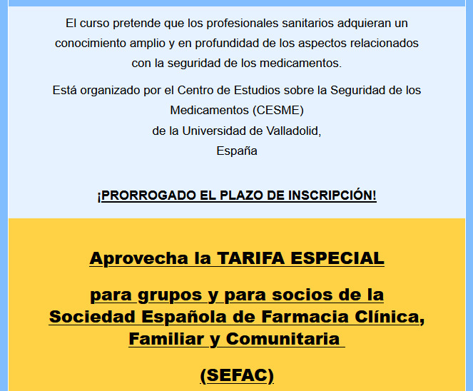 Curso online de Farmacovigilancia para Profesionales Sanitarios / ¡Ampliado plazo inscripción!
