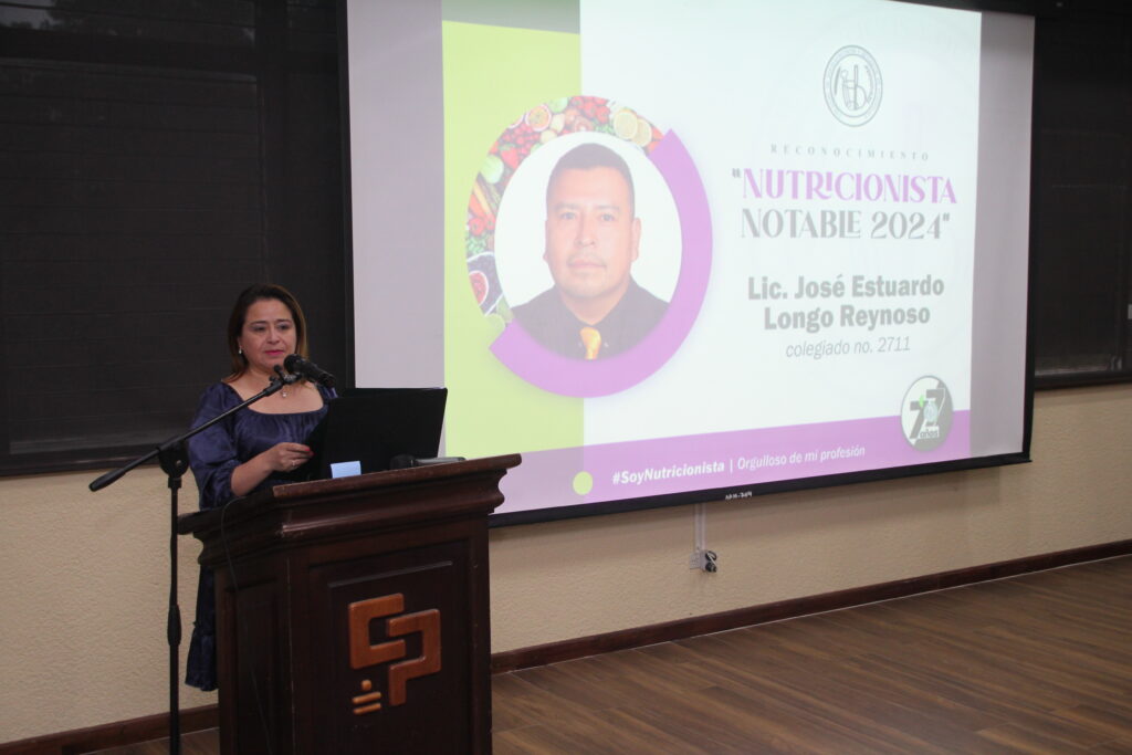 Posteriormente, se entregó el reconocimiento “Nutricionista Notable 2024” a la Lcda. Lucía María Gutiérrez Spillari, Lcda. Laura Teresa Rodríguez Aguilar, Lcda. Adriana Renata González Di Bartolomeo, Lcda. Karin Yolanda Barquero Sánchez y Lic. José Estuardo Longo Reynoso. En sus discursos, agradecieron a la Juna Directiva del colegio por la distinción recibida.
