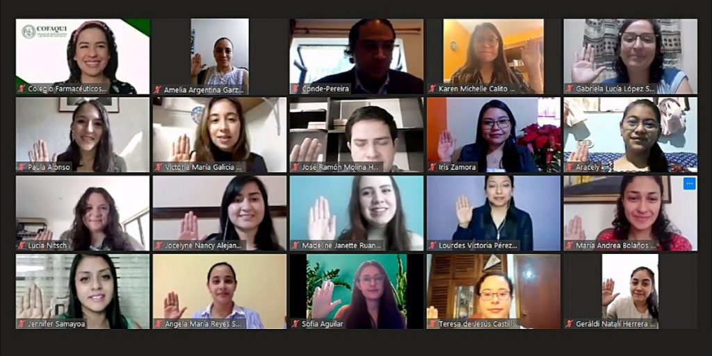 18 profesionales se incorporaron al Colegio de Farmacéuticos y Químicos de Guatemala -COFAQUI- al participar en el acto de juramentación virtual el 12 de diciembre, el cual fue autorizado por Junta Directiva 2019/2021 como medida de apoyo a los profesionales recién graduados y en cumplimiento de las medidas de distanciamiento social por el COVID-19. En el acto participaron siete profesionales de Química Biológica, cuatro de Nutrición, cuatro de Química Farmacéutica, dos de Biología y uno de Química.