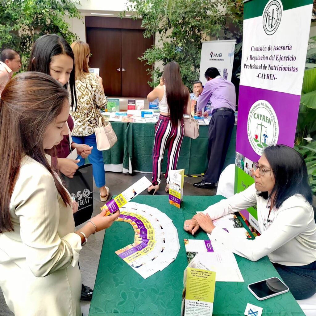 Por medio de la Comisión de Asesoría y Regulación del Ejercicio Profesional de Nutricionistas (CAYREN) y la Mesa Técnica del Timbre de Nutrición, el colegio brindó información personalizada en un stand habilitado temporalmente en el hotel en donde se realizó el evento.
