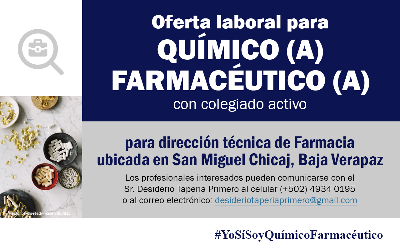 Se inscribió en el Colegio de Farmacéuticos y Químicos de Guatemala el 29 de noviembre de 2,000. Obtuvo el colegiado 2,111.