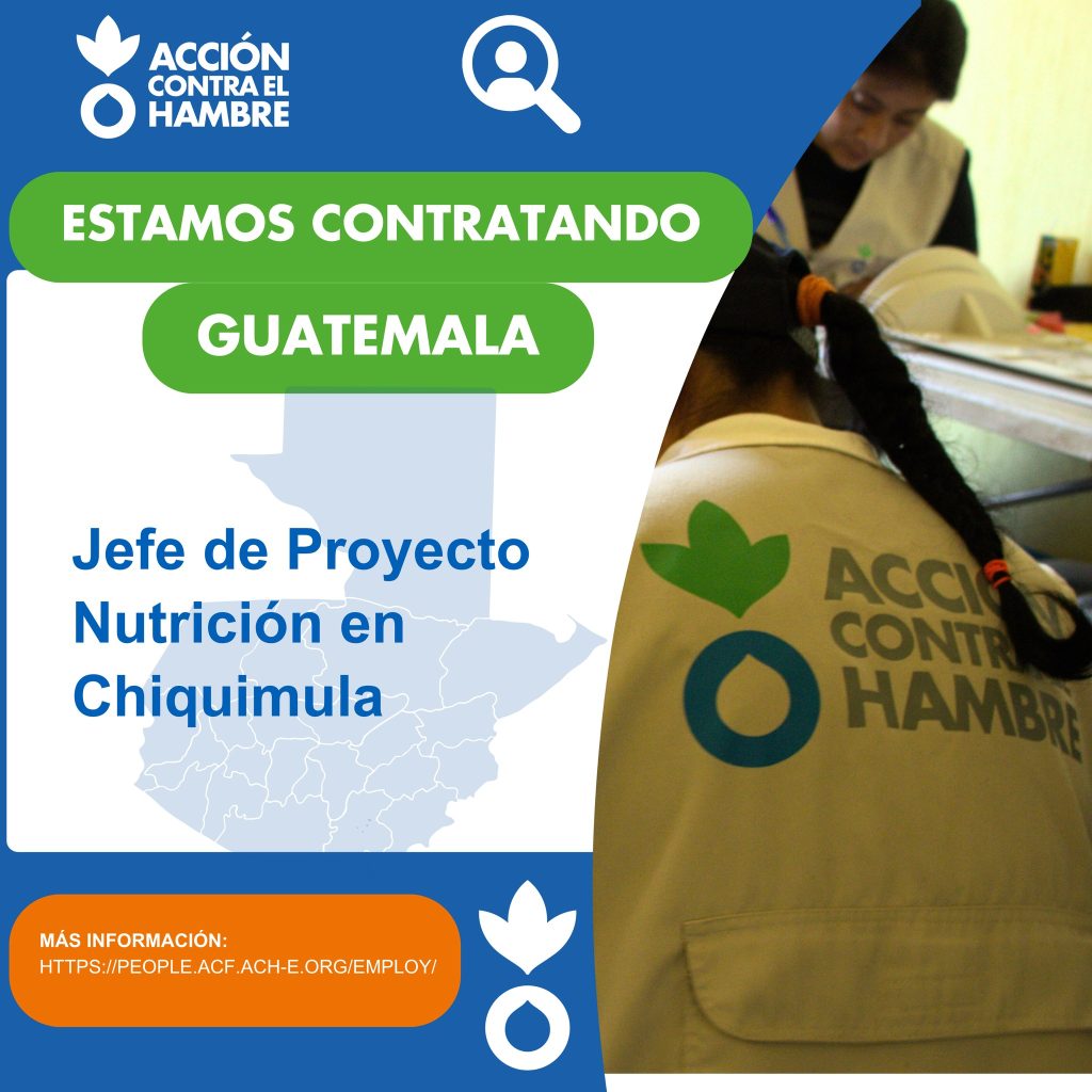 Oferta laboral para Nutricionista para Jefe de Proyecto de Nutrición en Chiquimula