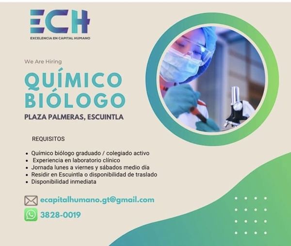 Oferta laboral para Químico (a) Biólogo (a) para Escuintla