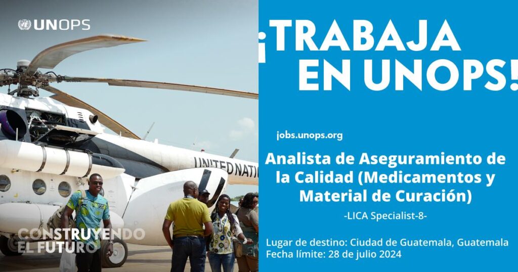 Oferta laboral para Químico (a) Farmacéutico (a) para Analista de Aseguramiento de la Calidad (Medicamentos y Material de Curación) – UNOPS en Guatemala.