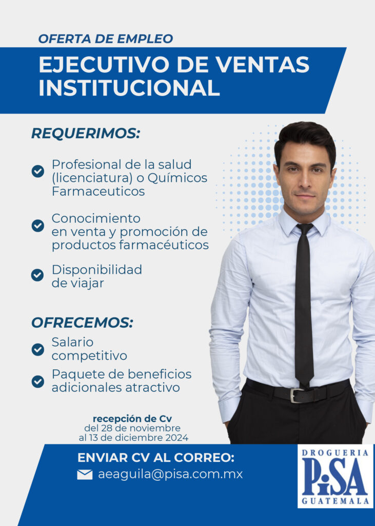 Oferta laboral para Químico (a) Farmacéutico (a) para Ejecutivo de Ventas Institucional
