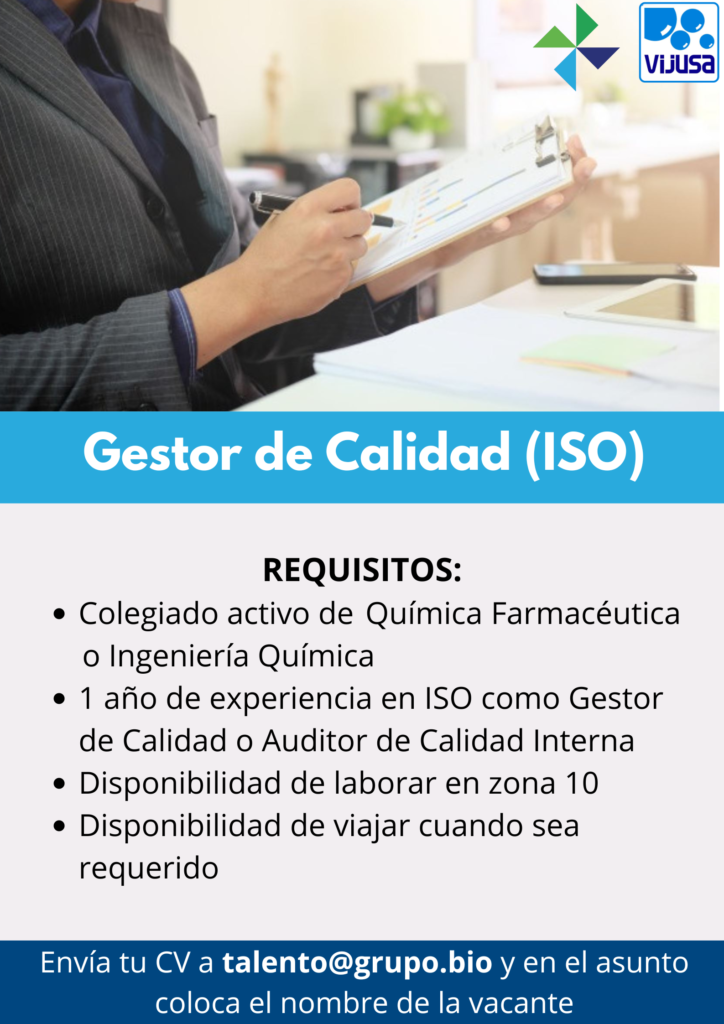 Oferta laboral para Químico (a) Farmacéutico (a) para Gestor de la Calidad.