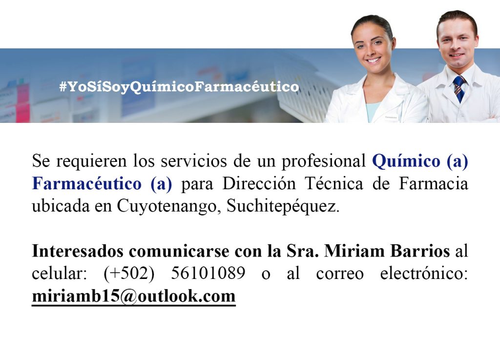 Oportunidad Labora para Dirección Técnica de Farmacia en Cuyotenango.