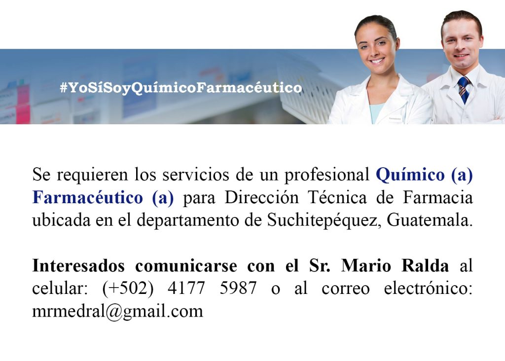 Oportunidad Laboral para Dirección Técnica de Farmacia en Suchitepéquez.