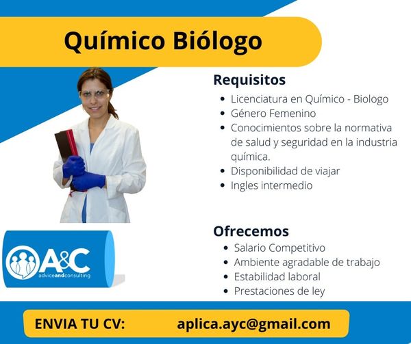 Oportunidad laboral para Químico (a) Biólogo (a)