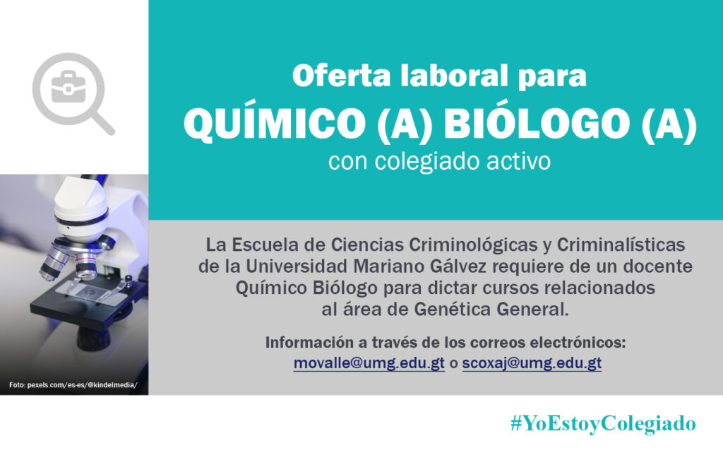 Oportunidad laboral para Químico (a) Biólogo (a) para Docencia en la UMG.