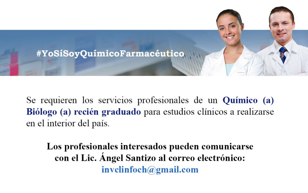 Oportunidad laboral para Químico (a) Biólogo (a) para estudios clínicos.