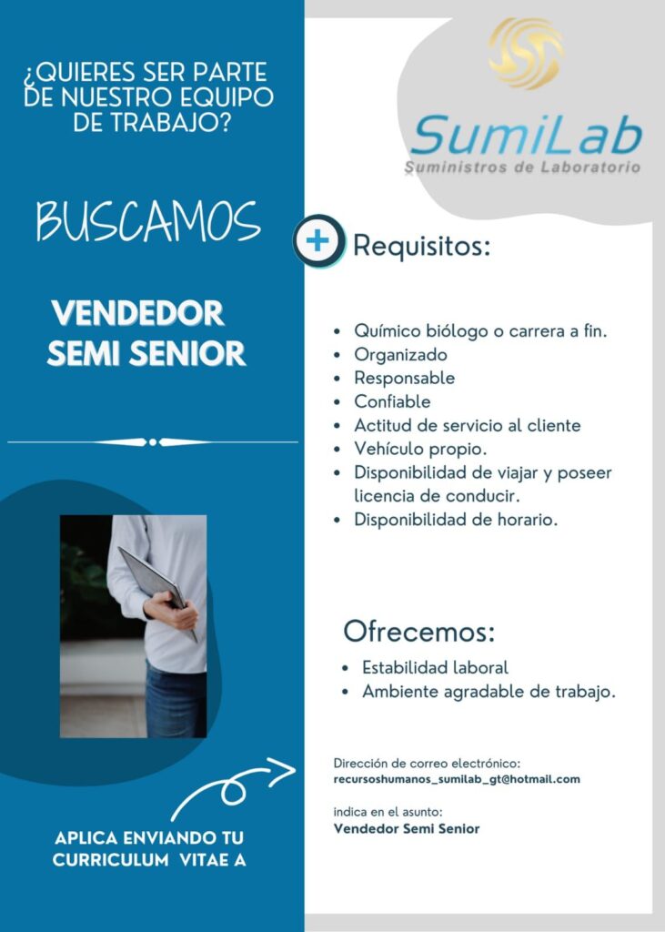 Oportunidad laboral para Químico (a) Biólogo (a) para Vendedor Semi Senior