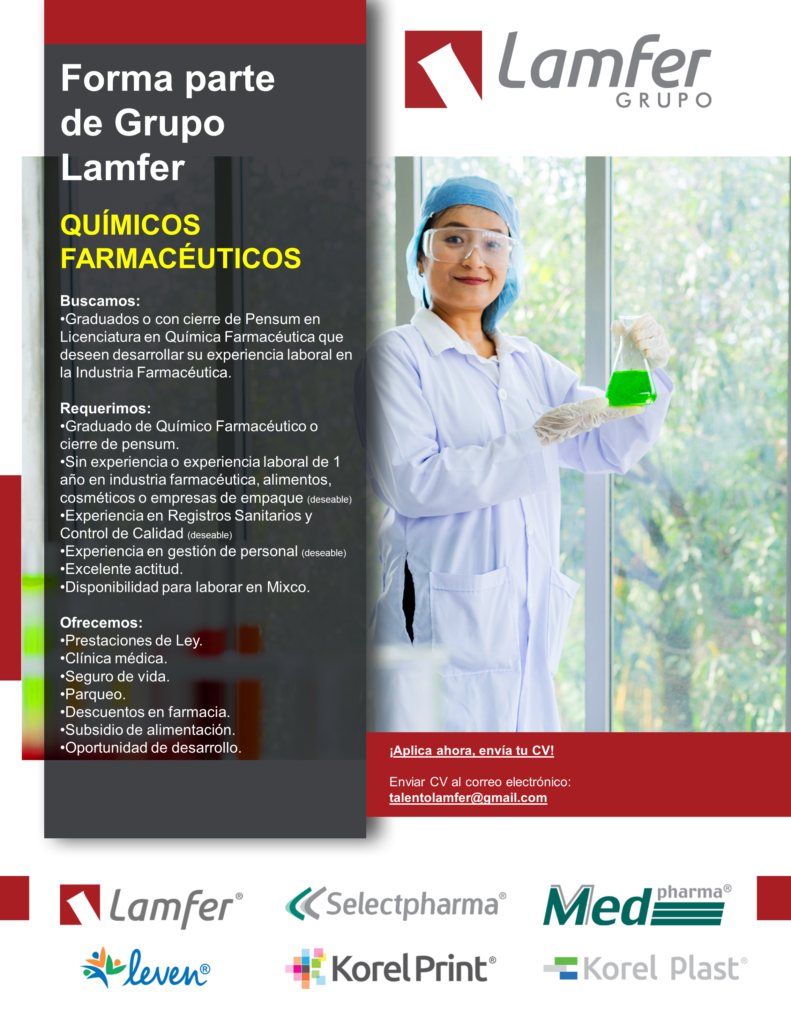 Oportunidad laboral para Químico (a) Farmacéutico (a) en LAMFER.