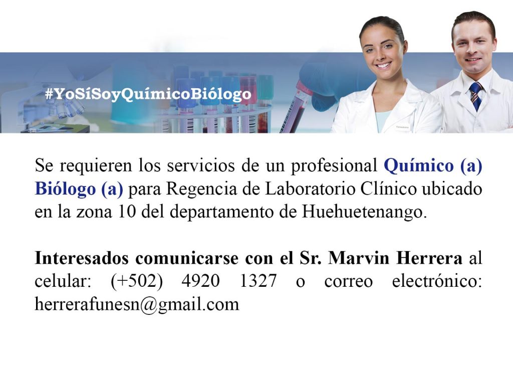 Oportunidad Laboral para Regencia de Laboratorio Clínico en Huehuetenango.