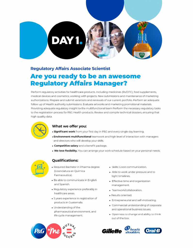 COPIA EL LINK PARA APLICAR: https://www.pgcareers.com/job/guatemala-city/regulatory-affairs-associate-scientist/936/13959924496?source=RS_PGRECRUITER
