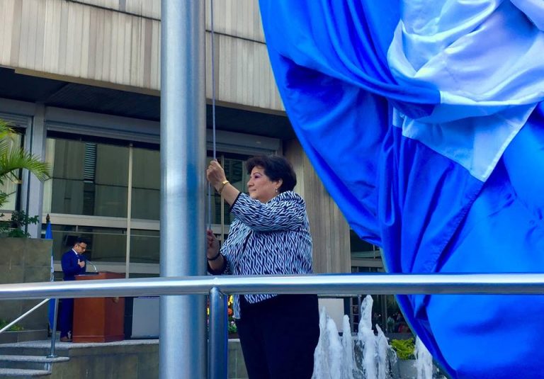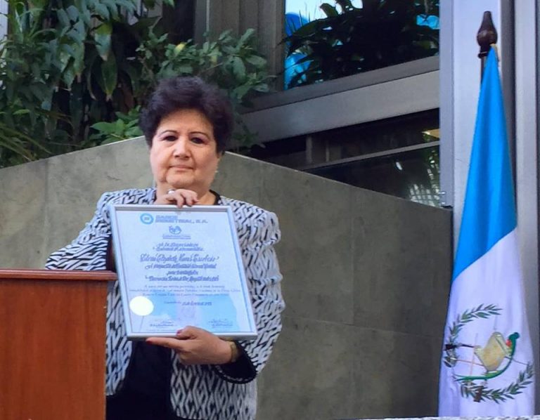 La profesional fue la encargada de izar el pabellón nacional y recibió un diploma, reconocimientos que se otorgan a ciudadanos guatemaltecos destacados por sus altos valores en beneficio de nuestro país. La Licda. Gloria Navas agradeció por el reconocimiento recibido y aseguró que es una forma de exaltar a la profesión del Químico Farmacéutico: “Como agremiados al colegio nos debemos sentir satisfechos de hacer, con nuestro granito de arena, cada vez más grande a Guatemala”