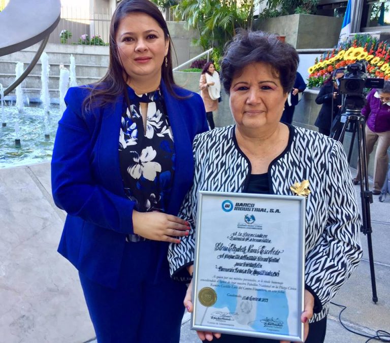 La Licda. Gloria Navas Escobedo, profesional Química Farmacéutica agremiada al Colegio de Farmacéuticos y Químicos de Guatemala -COFAQUI- recibió un merecido homenaje por parte del Programa Cívico Permanente del Banco Industrial, como parte de la promoción que cumple sus Bodas de Oro Magisteriales del Instituto Normal Central para Señoritas “Belén”. El acto se realizó este martes en la Plaza Cívica “Ricardo Castillo Love” en el Centro Financiero, zona 4
