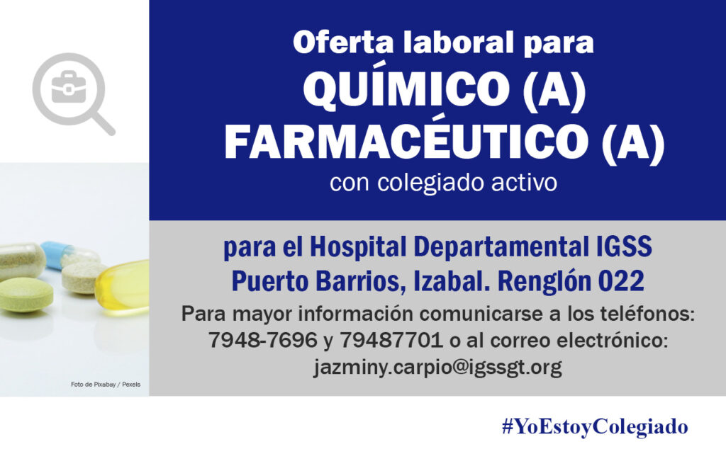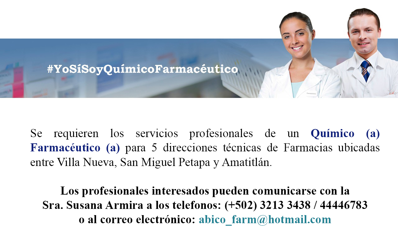 - Inscrito en el Colegio de Farmacéuticos y Químicos de Guatemala el 21 de abril de 1981.