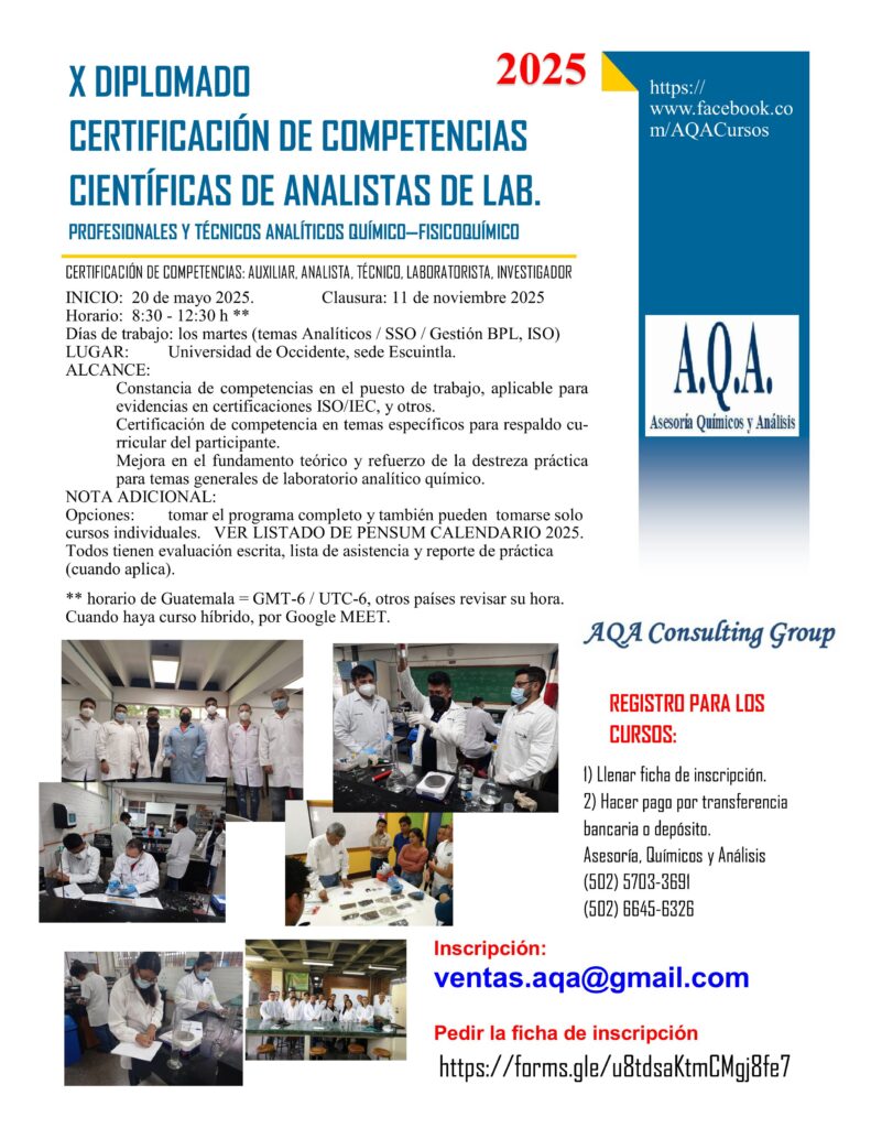 X DIPLOMADO CERTIFICACIÓN DE COMPETENCIAS CIENTÍFICAS DE ANALISTAS DE LAB. Profesionales y Técnicos Analíticos Químico – Fisicoquímico